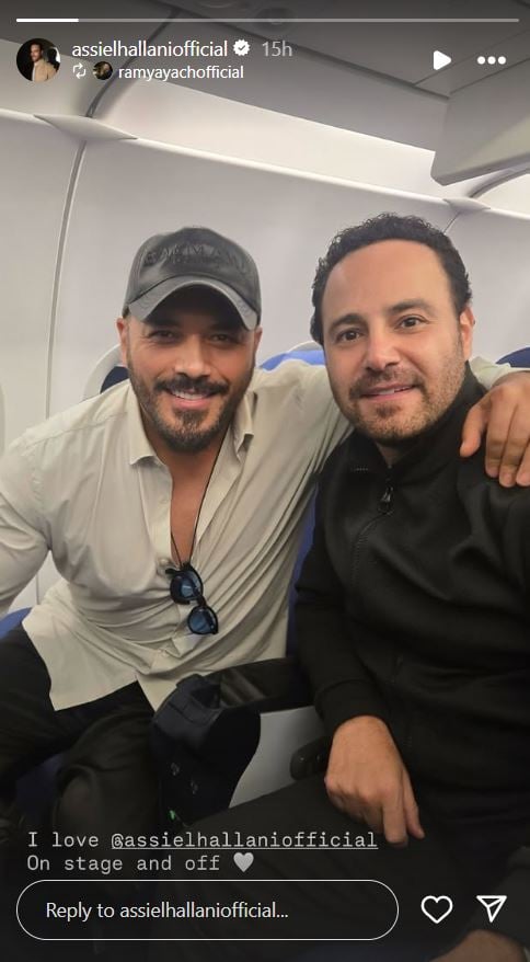 نشر النجم رامي عياش صورة عبر خاصية القصص المصورة على انستغرام جمعته بالنجم عاصي الحلاني أثناء وجودهما معاً على متن الطائرة.