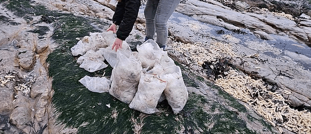 وفي محاولة للسيطرة على الوضع، أطلق سكان عبر صفحة مجتمعية على فيسبوك نداءً للمتطوعين للمساعدة في تنظيف الشاطئ، حيث شدد بونيتشي على أن إزالة الأكياس البلاستيكية أولوية بسبب خطورتها على البيئة البحرية، خصوصاً مع وجود مجموعة صغيرة من الفقمات بالقرب من المكان.