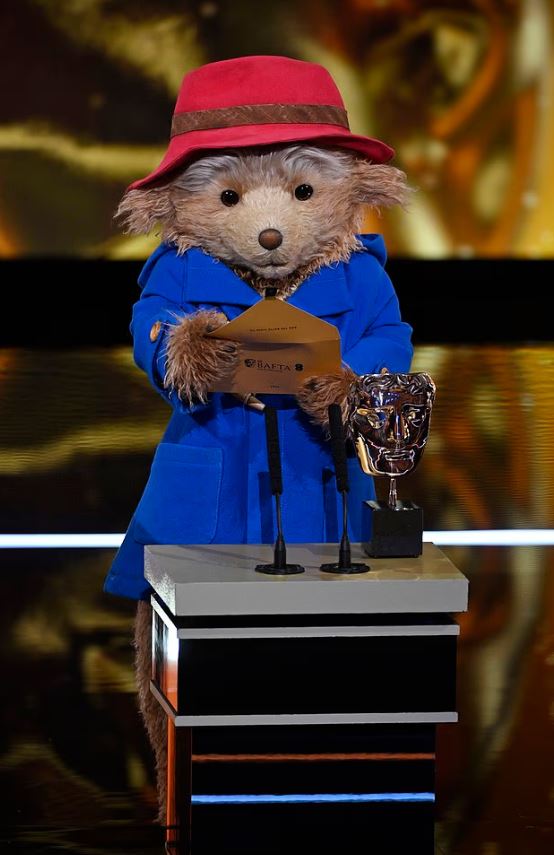 خطف الدب بادينغتون الأضواء بظهوره المميز خلال حفل توزيع جوائز بافتا 2026، حيث خصص بعض الوقت من عرضه المسرحي لتقديم جائزة أفضل فيلم للأطفال والعائلة.